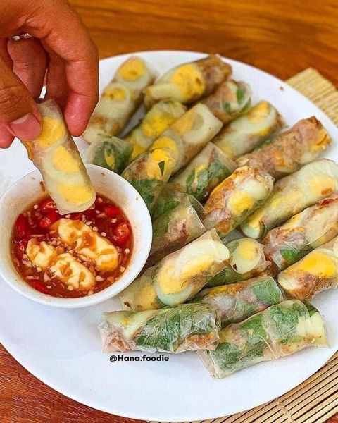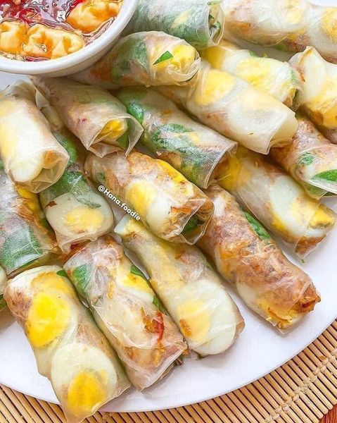 💦Thoa chút nước vào bánh tráng cho mềm rồi cho các topping vào cuốn lại là xong nè, có thể cho ít muối tôm nếu thích nha