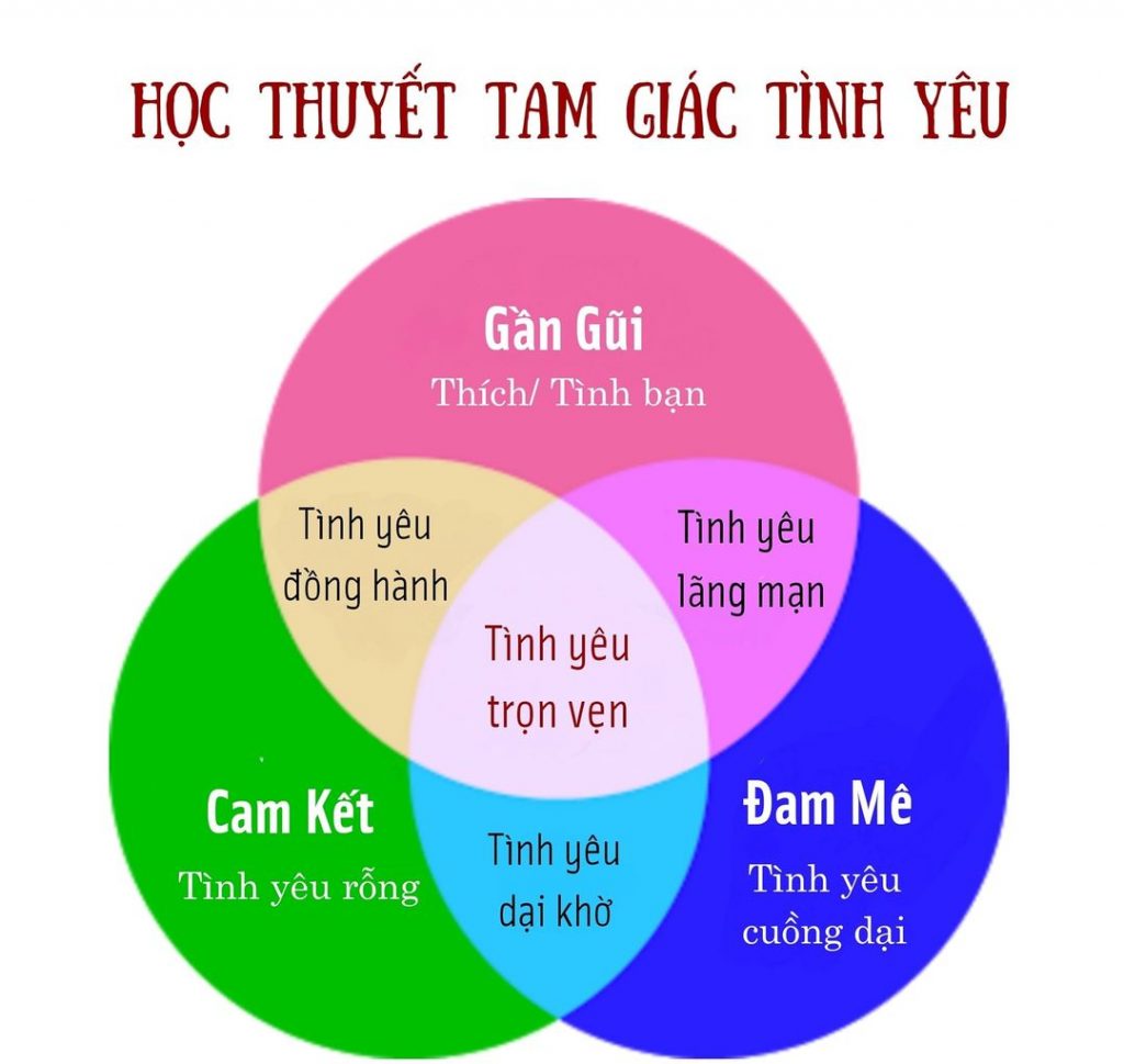 ‘Đam mê’ thường là thành phần xuất hiện đầu tiên trong mối quan hệ. Sau đó, mình mới chủ động tiếp xúc với người kia, mới trò chuyện và cùng người kia chia sẻ nhiều hơn về bản thân, mong muốn và ước mơ của mình, để dần dần trở nên ‘Thân mật’ với nhau. Và cuối cùng là dẫn đến quyết định sẽ ‘Cam kết’ gắn bó với nhau cả đời.