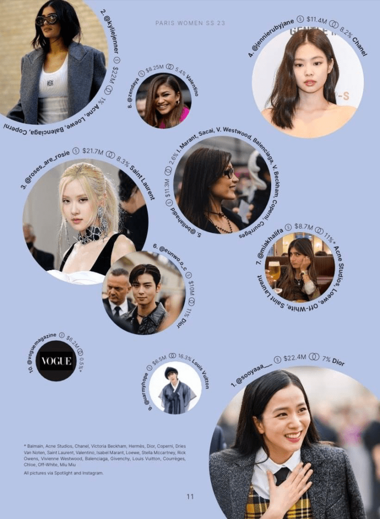 5 IDOL K-POP CÓ TRONG TOP 10 NGƯỜI CÓ TẦM ẢNH HƯỞNG NHẤT TẠI PARIS FASHION WEEK On 10/10/2022 By Linh In Khám Phá Jisoo (BLACKPINK)Kylie JennerRosé (BLACKPINK)Jennie (BLACKPINK)Bella HadidCha Eunwoo (ASTRO)Mia KhalifaZendayaj-hope (BTS)Vogue Post Views: 190