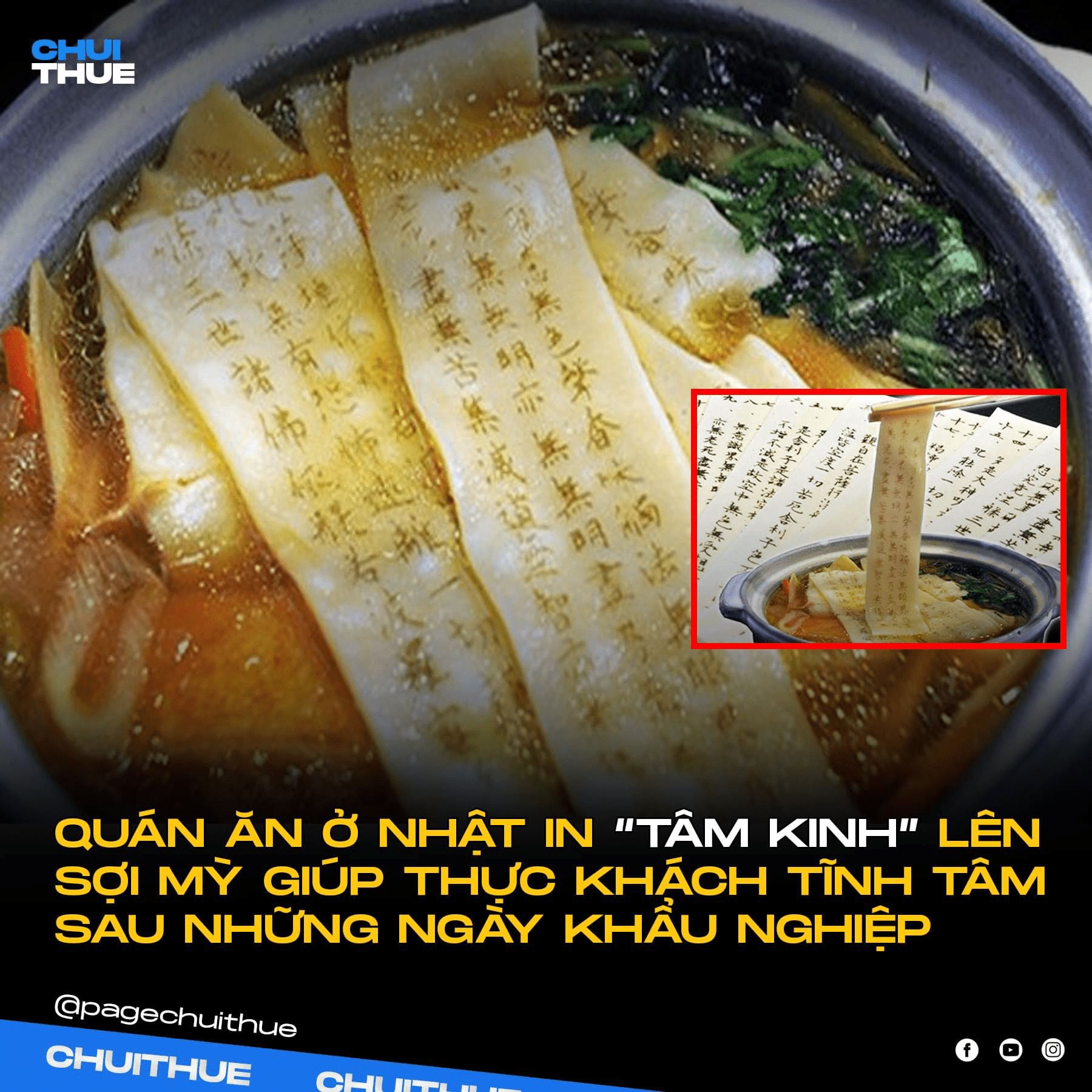 Cả một gói mì giải nghiệp có in toàn bộ Tâm Kinh, một trong những bộ kinh thiêng liêng nhất của Phật giáo. Một gói mì chứa toàn bộ Tâm Kinh 260 ký tự, cũng như một tập sách có nội dung đầy đủ với các chữ cái furigana để giúp đọc những chữ kanji khó nhất và hướng dẫn dịch sang ngôn ngữ hiện đại cho những người không quen thuộc với kinh Phật.