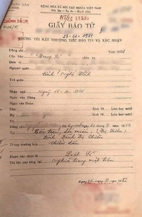 Những dòng ghi chép đơn giản, nguệch ngoạc như hy sinh tại… an táng tại mặt trận… lại đè nén hàng triệu triệu trái tim của mỗi gia đình, mỗi người cha, người mẹ, người …