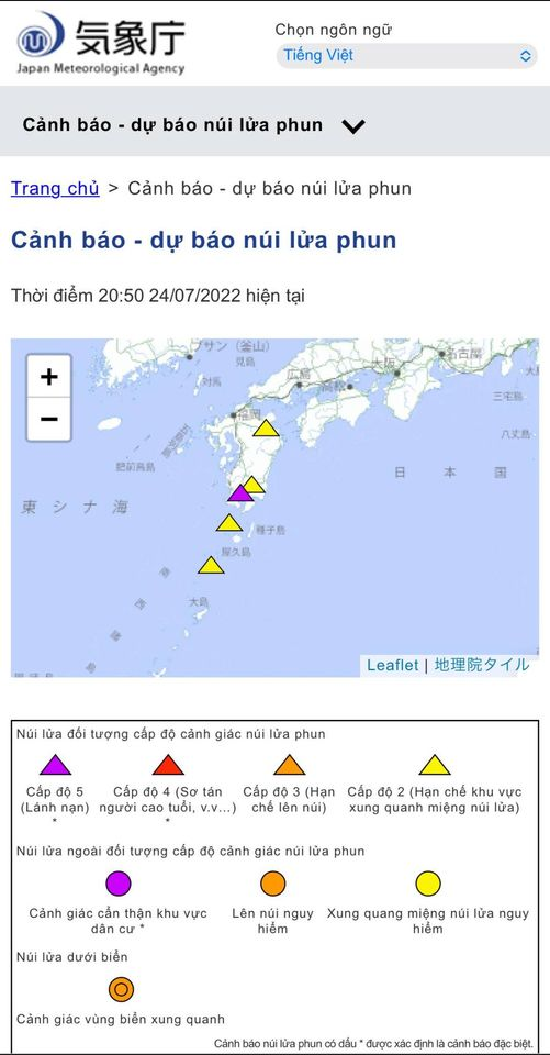 Hôm nay 24/7 vào lúc 20:05 (18:05 giờ Việt Nam), núi lửa đã phun trào tại Sakurajima, tỉnh Kagoshima. Khu vực ảnh hưởng: Thành phố Kagoshima, Thành phố Tarumizu Hướng đi: Đông (Kihoku,Thành phố Kanoya) …
