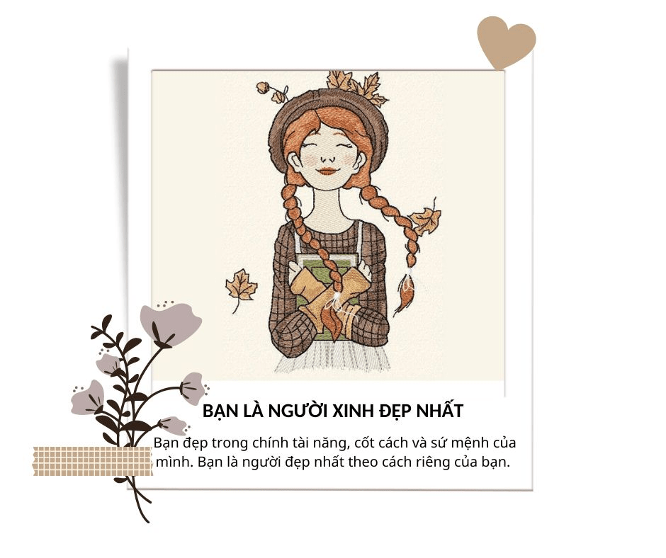 Bạn à, đâu có một chuẩn mực nào về cái đẹp? Dù bạn là ai, trong hoàn cảnh nào, hãy luôn nhớ rằng người khác sẽ chẳng bao giờ được phép dùng miệng lưỡi mình để châm trích bề ngoài của bạn. Ở đời điều bất hạnh nhất không phải là sự khiếm khuyết về thân thể, sự phốp pháp về hình dáng, bất hạnh nhất là khi bạn tự chà đạp chính mình. Bạn đẹp trong mắt người biết trân trọng bạn. Bạn đẹp trong chính tài năng, cốt cách và sứ mệnh của mình. Bạn là người đẹp nhất theo cách riêng của bạn.