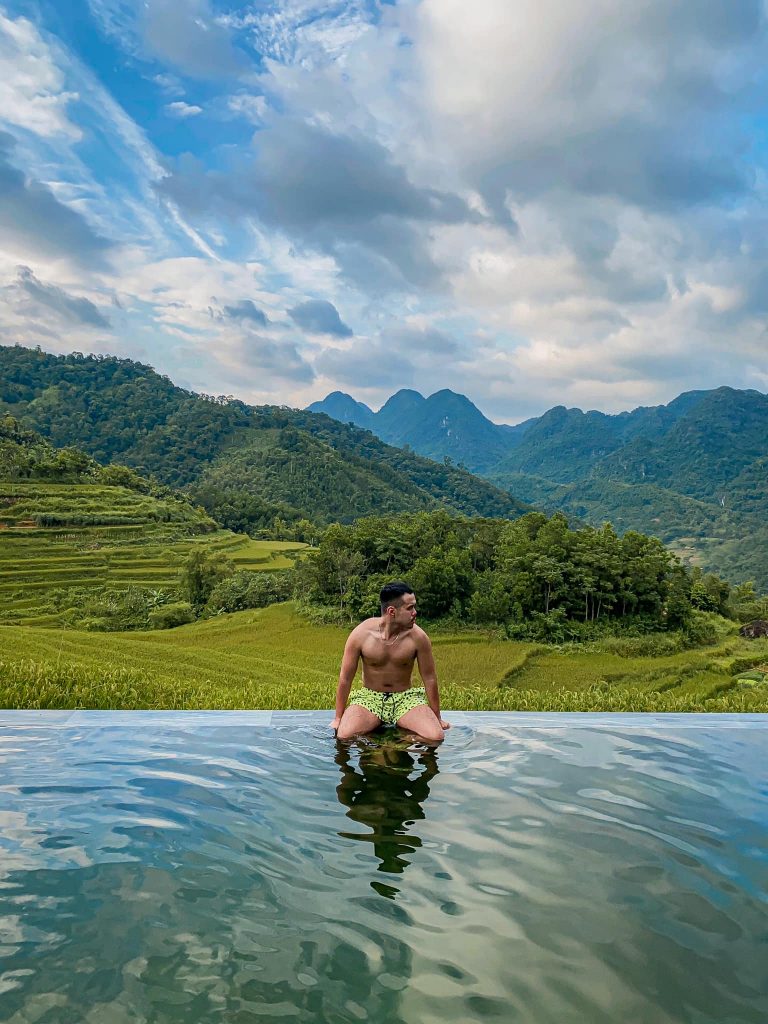 Đầu tiên, đứng trước gương nhìn ngắm cơ thể của mình một chút, gồng gồng cơ bắp tay, ngắm cơ ngực, cơ bụng, cơ lưng, đến đùi. Quào, đẹp trai nhỉ!