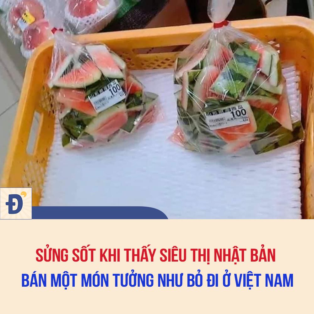 Theo đó, một cô gái hiện đang sinh sống ở Nhật Bản phát hiện trong siêu thị nước này có bán… cùi dưa hấu, bao gồm cả vỏ. Thông thường, cùi và vỏ dưa hấu thường bỏ đi ở Việt Nam khi bổ dưa nên cô nàng khá bất ngờ khi thấy phần này được đóng gói, bán hẳn hoi trong siêu thị thế này.