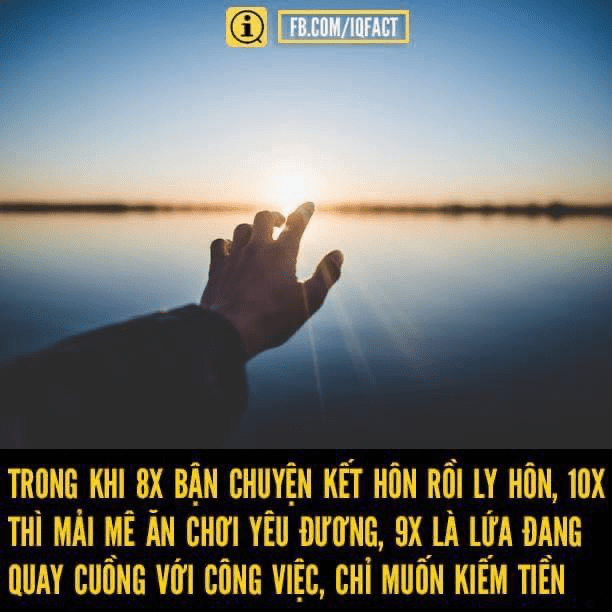 Bạn không còn đủ thời gian quan tâm đến những nỗi đau cho mấy “bà” 8x vì đơn giản đó chẳng phải việc của mình! Bạn nghĩ thế hệ bạn sẽ khác sao? Không! Chẳng qua chưa tới giai đoạn để bạn phải trải qua những thứ đó thôi.
