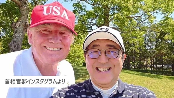 Đáng tiếc, vì tôi không có bức ảnh nào đẫm nước mắt nên tôi sẽ up bức ảnh vui vẻ lúc mà tôi cùng với thủ tướng Abe đi chơi golf khi tổng thống Trump đến thăm Nhật Bản. Quả là như vậy, đó là một bức ảnh hạnh phúc và tôi cảm giác được đó là một người chú to lớn và hiền lành.