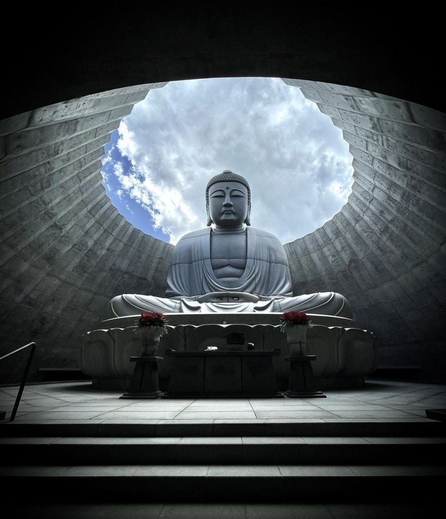 Toàn bộ pho tượng cao 13.5m và nặng 1.500 tấn. Đến nơi đây, bạn phải đi qua một vườn nước và một đường hầm dẫn đến nơi thờ cúng. Vườn nước được xây dựng với một ý nghĩa thiêng liêng, nó được xem là nơi để bạn thanh tẩy tâm hồn trước khi đến viếng Đức Phật.