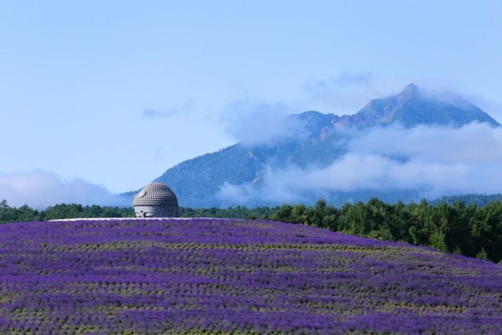 Bức tượng Phật ẩn mình giữa đại ngàn hoa oải hương tại Hokkaido, Nhật Bản