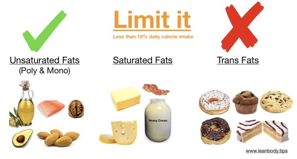 – Chất béo bão hòa (Saturated fat – Sat fat), chất béo chuyển hóa (Trans fat) là nhóm chất béo không tốt cho sức khỏe.