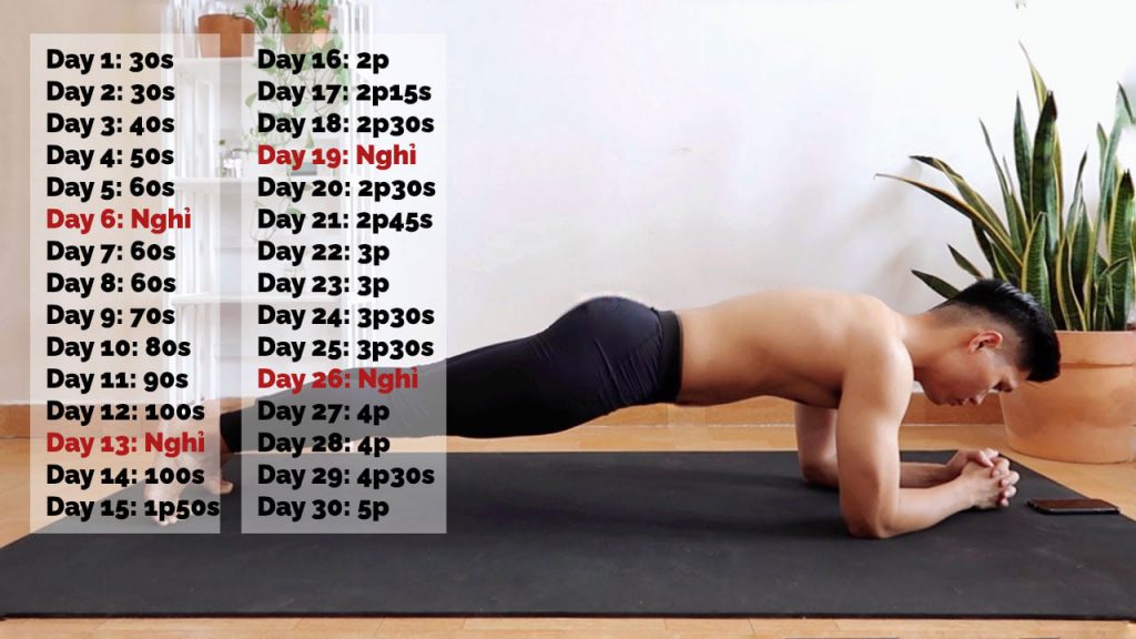 Khi chạm đến 5p rồi, sẽ thấy cơ thể thay đổi rõ rệt và cũng rất tự hào về bản thân mình. Một số người nói rằng họ không cần đến 30 ngày để chạm đến 5p – lý do là vì họ đã luyện tập 1 số bộ môn khác khiến họ có cơ bụng rất khoẻ. Nếu bạn là người mới, đừng đốt cháy giai đoạn mà hãy kiên trì từng ngày một giống như đặt nền móng xây một ngôi nhà. Bạn có thể tăng thời gian so với mốc mình note ra, miễn là bạn cảm thấy đủ khả năng.
