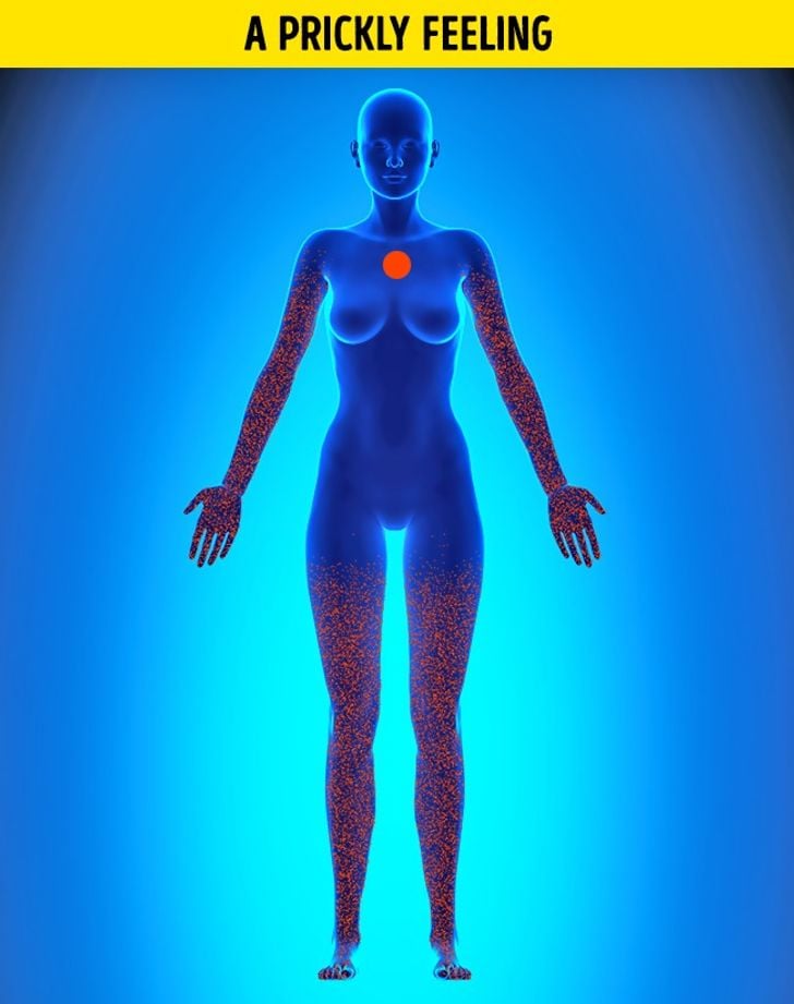Cảm giác như kim châm và tê không chỉ giới hạn ở cánh tay trái mà còn có thể xuất hiện ở cánh tay, chân và ngón tay phải.