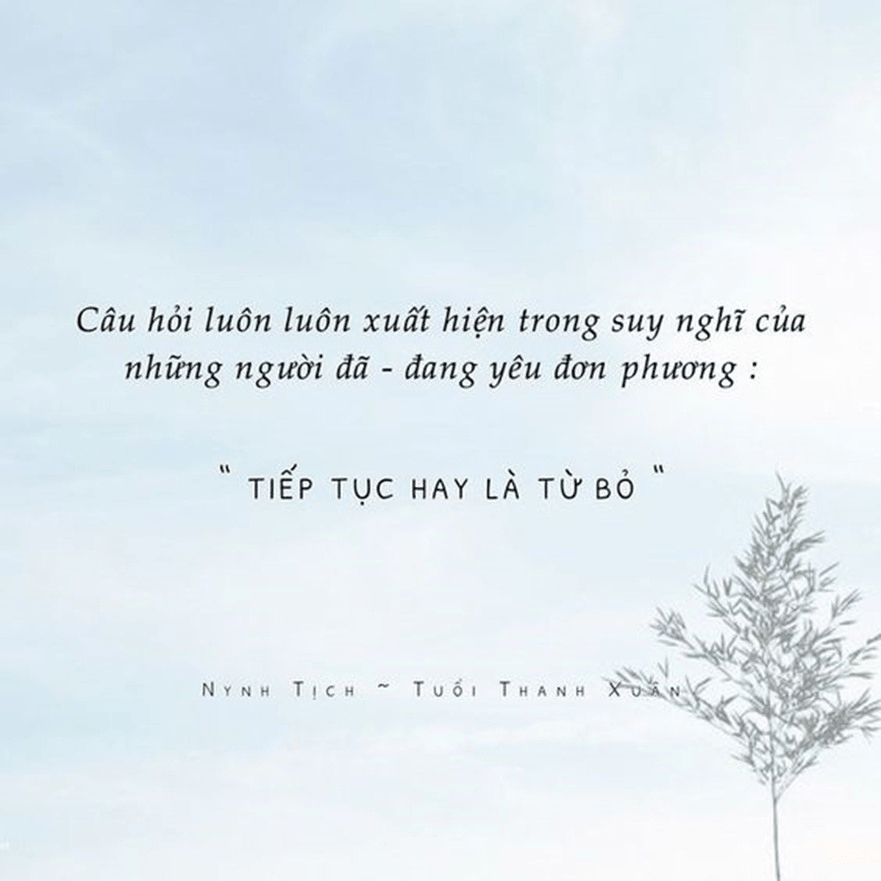 Nhưng giờ tôi không muốn thích cậu nữa, tôi muốn mình hạnh phúc, cũng muốn chúc phúc cho cậu. Tôi sẽ để tình cảm của mình dừng lại ở đây thôi. Và đặt cậu ở một góc nhỏ trong tim mình như một hồi ức ngây ngô, tươi đẹp. Từ ngày hôm nay tôi sẽ tập quên đi cậu.