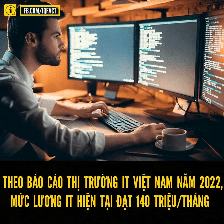 Theo “Báo cáo thị trường IT Việt Nam năm 2022″ do TopDev vừa phát hành, mức lương dành cho lập trình viên (IT) có dưới 2 năm kinh nghiệm dao động từ 350 – 565 USD/tháng (tương đương 8,3 – 13,4 triệu đồng/tháng).