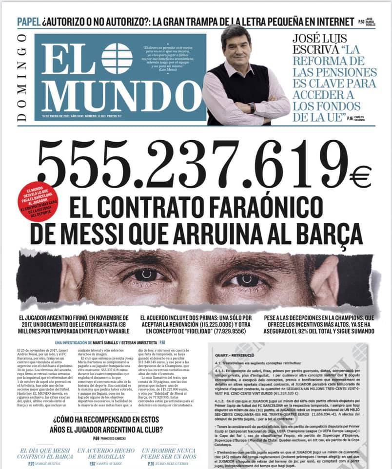 Đây được xem là số tiền thưởng khủng nhất mà 1 cầu thủ có thể nhận được từ 1 câu lạc bộ. Với việc để lộ chi tiết bảng hợp đồng cực khủng này cho công chúng, ban lãnh đạo tạm quyền của Barcelona đang phải hứng chịu rất nhiều trỉ chích từ những người hâm mộ Messi trên toàn thế giới.