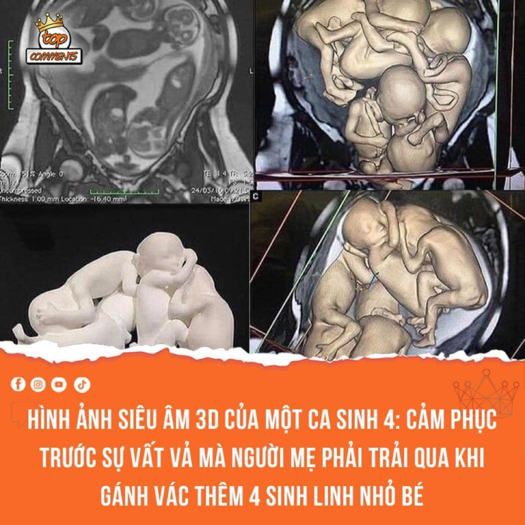 Được biết, đây là hình ảnh siêu âm 3D của một ca sinh 4, 4 sinh linh nhỏ bé tràn đầy sức sống đang ngoan ngoãn ở trong bụng mẹ đợi ngày chào đời.