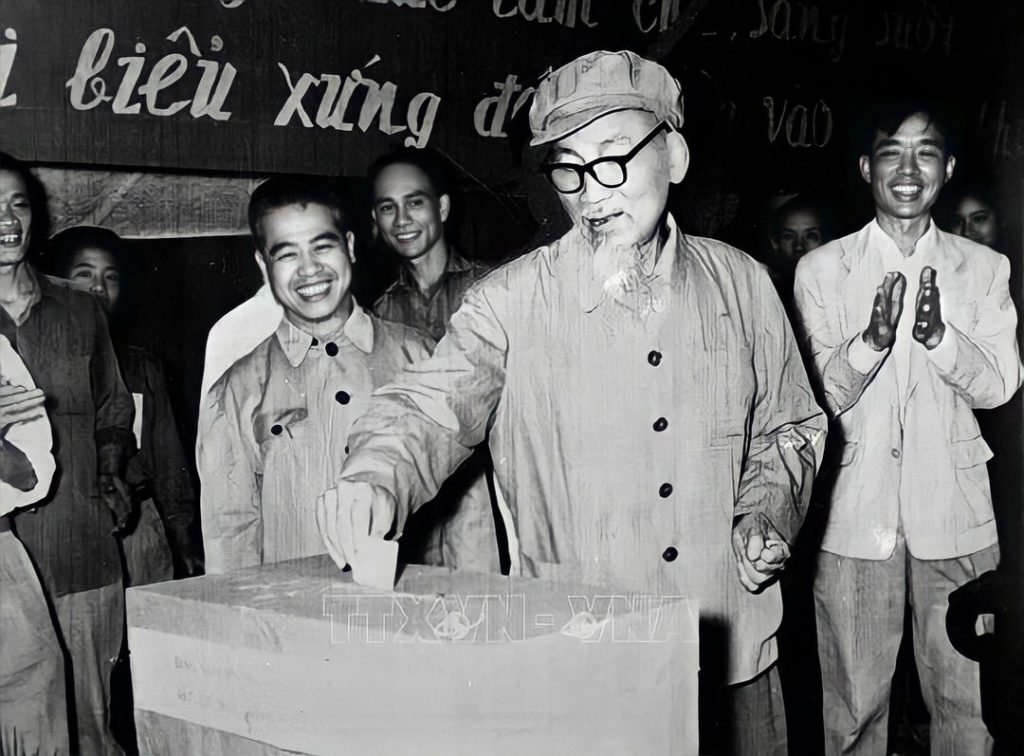 Một nhà báo giơ máy định chụp “tấm hình để đời” khi Bác viết phiếu thì Người lấy tay che phiếu lại và nói với nhà báo: “Không ai được vào đây. Đây là phòng viết phiếu kín của cử tri. Phải bảo đảm tự do và bí mật cho công dân”.