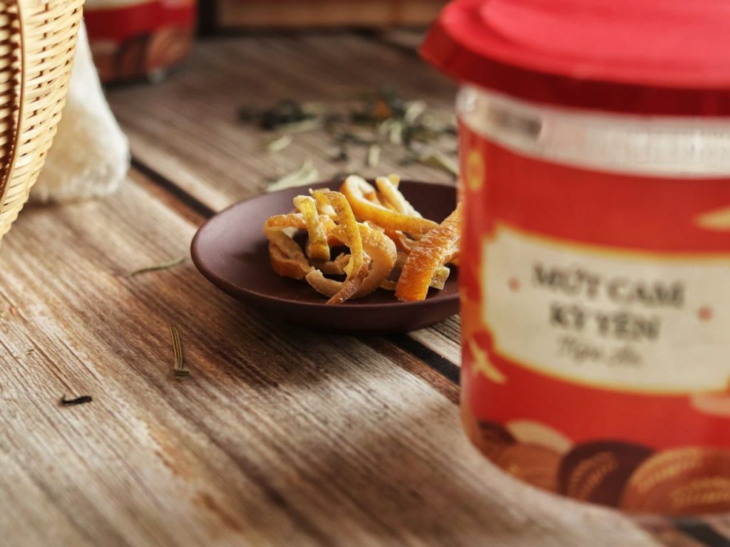 Ngoài ra, vỏ cam Vinh Kỳ Yến còn được chế biến thành món ăn ngon lành cho khẩu vị và cả sức khoẻ chúng ta: Mứt vỏ cam. Đây là sản phẩm đã được mang tên thương hiệu Cam Vinh Kỳ Yến của Việt Nam xuất khẩu đi Hà Lan vào cuối năm 2018. Theo như chị Lê Na và thương hiệu Cam Vinh Kỳ Yến, đây là một sản phẩm chế biến hết sức kỳ công, tỉ mỉ và cẩn thận từ những người yêu nông sản sạch từ Phủ Quỳ. Mứt vỏ cam sấy dẻo Kỳ Yến được sản xuất từ 100% Cam Vinh Kỳ Yến tươi kết hợp với đường và nước chanh tươi, hoàn toàn không thêm phụ gia, rất tốt cho sức khỏe. Sản phẩm mứt vỏ cam sấy dẻo cam kết 5 không: không chất bảo quản, không chất tạo màu, không hương liệu tổng hợp, không chất ổn định và không biến đổi gen.