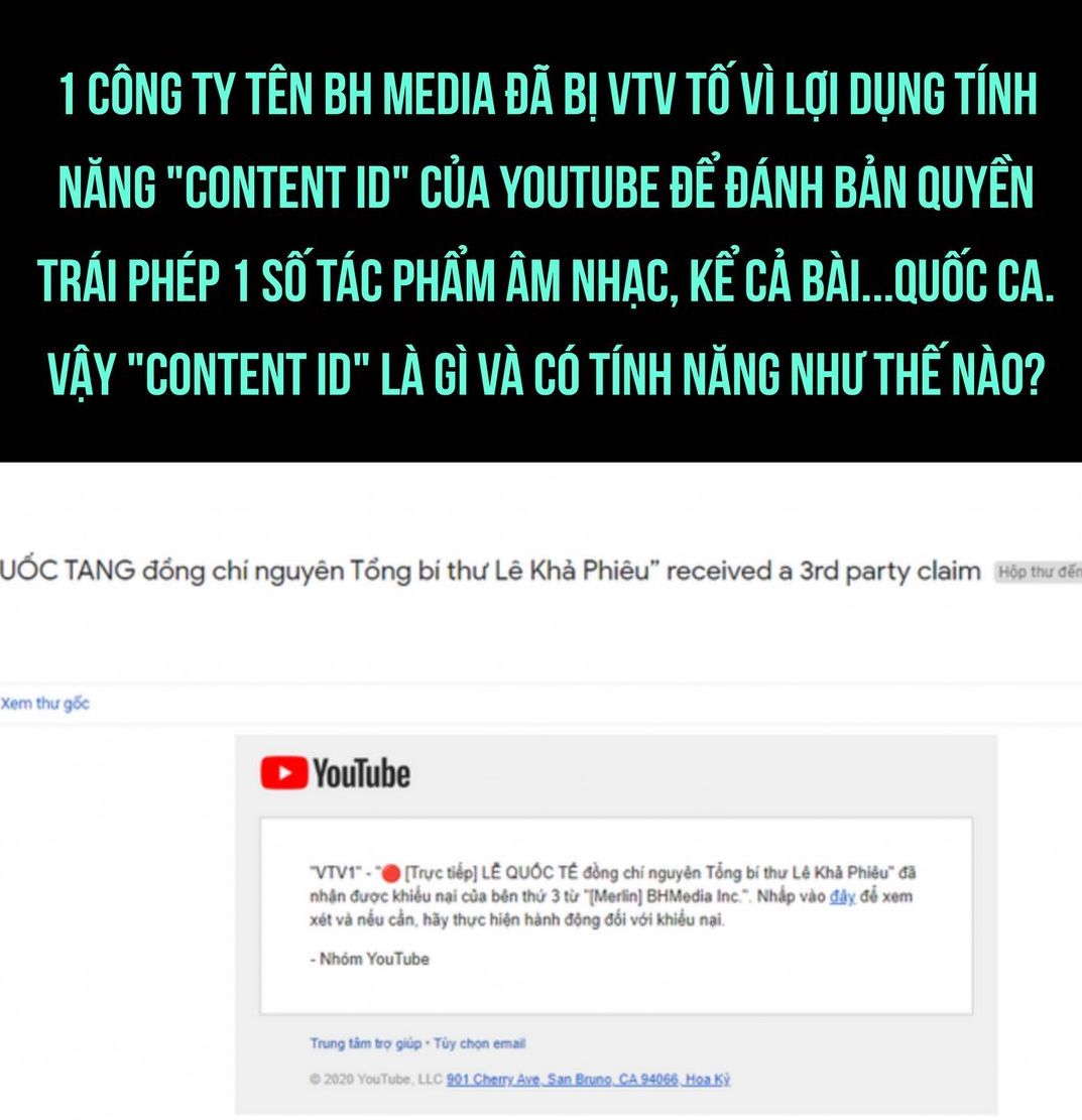 Khi video được tải lên YouTube, chúng được đối chiếu với cơ sở dữ liệu nội dung đã được gửi tới Content ID để chủ sở hữu nội dung (ví dụ ở đây là BH Media) có thể quyết định điều gì sẽ xảy ra khi nội dung trong 1 video bất kì tải lên YouTube có khớp với nội dung mà họ sở hữu hay không. Khi Content ID phát hiện thấy video trùng khớp, thì Content ID sẽ xác nhận quyền sở hữu video thay mặt cho chủ sở hữu nội dung. Và sẽ hiện ra thông báo “vi phạm bản quyền bởi…” tới người dùng vi phạm.