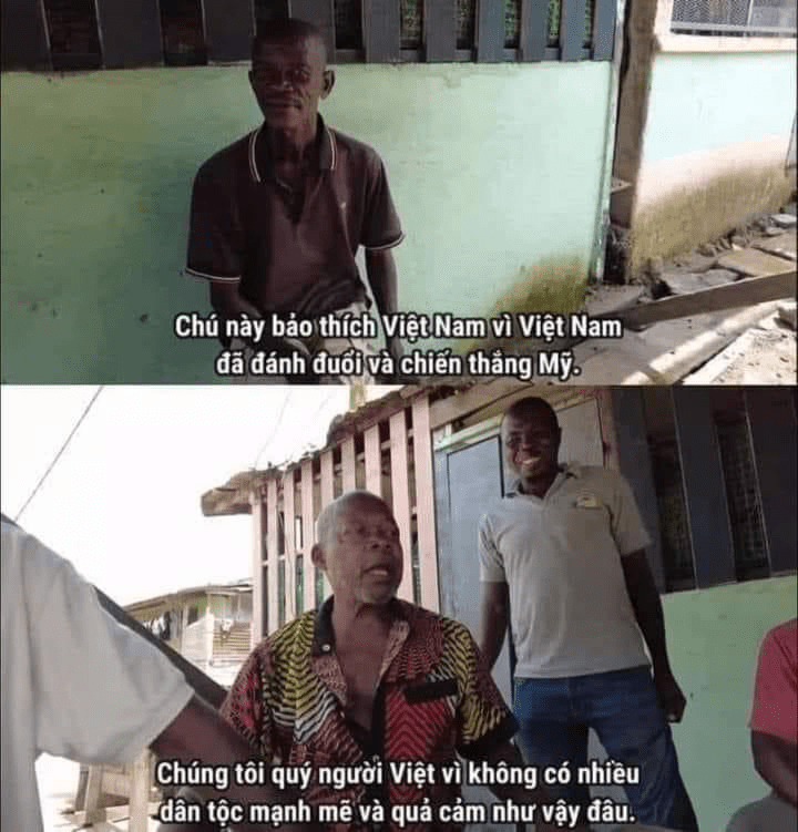 Trong vlog của Youtuber Lại Ngứa Chân khám phá thành phố Douala – thành phố lớn nhất của Cameroon, những người dân ở đây cho biết họ rất quý đất nước Việt Nam vì Việt Nam là tấm gương chiến đấu chống ngoại xâm, họ được dạy và học về những cuộc cuộc chiến vĩ đại của dân tộc Việt Nam. Còn những người dân Angola qua những thước phim của Quang Linh Vlog cũng cho biết về những người dân Việt Nam anh hùng, chiến đấu đ.ánh đu.ổi những cường quốc để thống nhất nước…