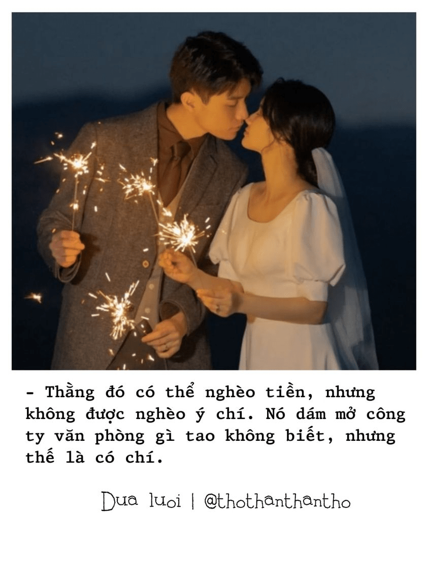 – Thằng đó có thể nghèo tiền, nhưng không được nghèo ý chí. Nó dám mở công ty văn phòng gì tao không biết, nhưng thế là có chí.