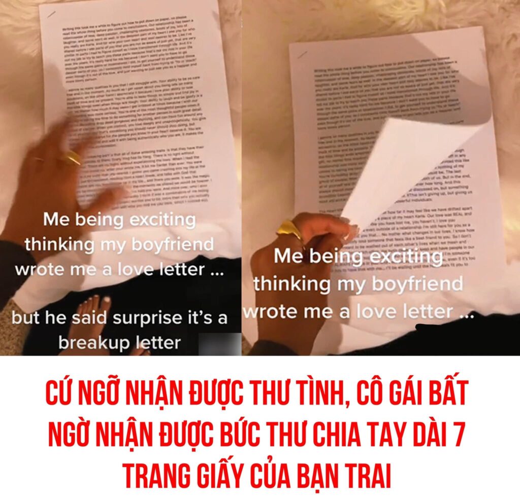 Trong thời đại ngày nay việc viết thư có vẻ là một điều xa xỉ với nhiều cặp đôi yêu nhau. Kayla Velarde cũng vì thế mà rất hào hứng khi bạn trai nói có một bức thư làm món quà bất ngờ đang chờ cô ở nhà. Đáng buồn thay, đây không phải là một lời cầu hôn hay lời yêu ngọt ngào mà là một bức thư chia tay dài 7 trang giấy.