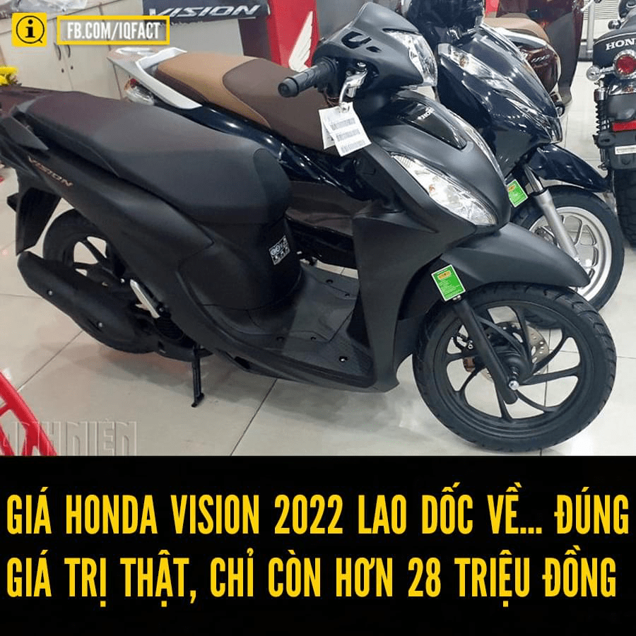Theo đó, Honda Vision 2022 đang được các đại lý bán ra với mức giá 30,29 triệu đồng đối với bản tiêu chuẩn, bản cao cấp có giá 31,99 triệu đồng, bản đặc biệt giá 33,29 triệu đồng và bản cá tính là 34,79 triệu đồng đối với bản cá tính. Như vậy, nếu tính thêm chí phí ra biển và giấy tờ cho xe, giá Honda Vision 2022 hiện dao động từ 38,7 – 44,9 triệu đồng.