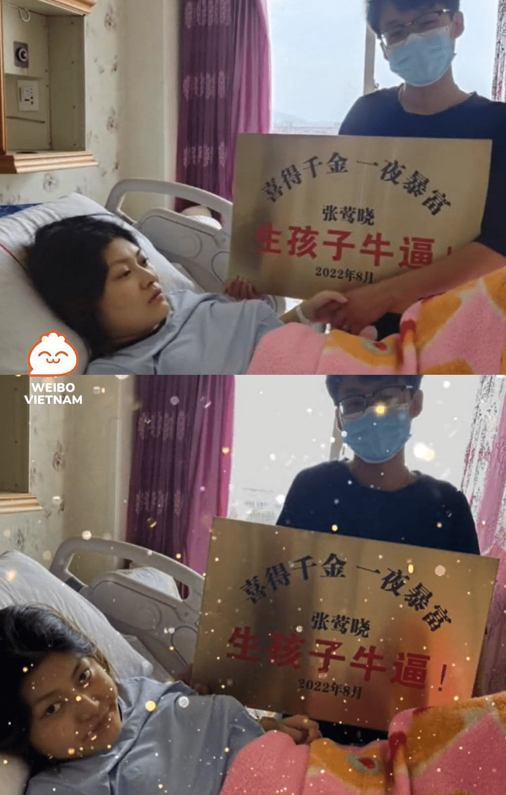 CƯỜI Ẻ HÌNH ẢNH ANH CHỒNG TẶNG CHO VỢ NGUYÊN MỘT TẤM BẢNG VÀNG ĐỀ CHỮ “SINH CON RẤT ĐỈNH” ĐỂ CHÚC MỪNG VỢ ĐÃ VƯỢT CẠN THÀNH CÔNG