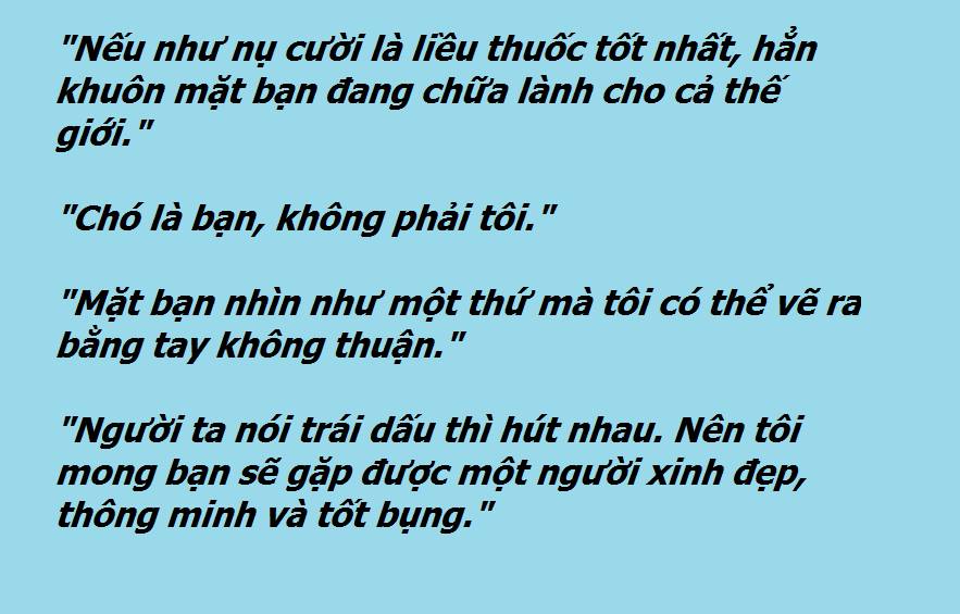 Một đồng nghiệp của tôi bị một cô hầu bàn chửi thế này khi anh ta cố tán tỉnh cô ta. “Cái nhân cách của anh còn giống con cu hơn cái thứ trong quần anh.”