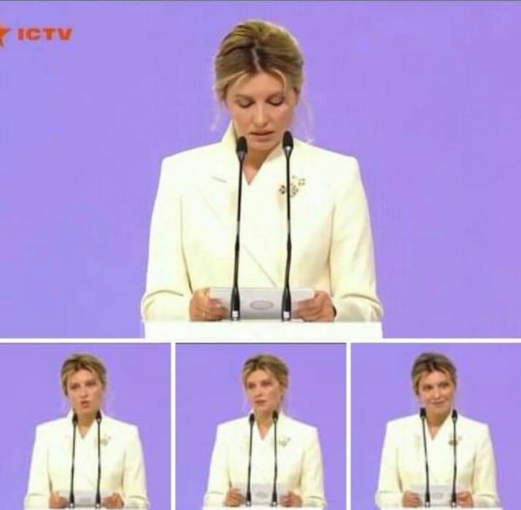 Đệ nhất phu nhân Ukraine Olena Zelenska trong bài phát biểu trên truyền hình ở Kiev