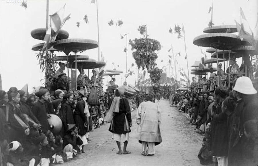 P/s: Ảnh thí sinh trúng tuyển diễn hành qua các giám khảo trong kỳ thi 1897 ở trường thi Nam Định năm 1897.