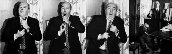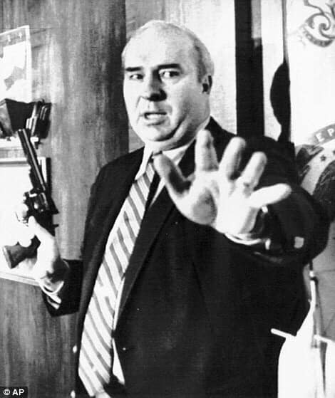 Ngày 22 tháng 1 năm 1987, trước sự chứng kiến của toàn bộ phóng viên cùng toàn bộ máy quay phát sóng truyền hình, ông đã rút ra một phong bì bên trong bọc một khẩu súng lục 357 Magnum được giấu dưới chiếc bục. Đám đông bắt đầu nháo nhào hoảng sợ trước tuyên bố của cựu chính trị gia: “Xin vui lòng hãy rời khỏi đây ngay lập tức nếu điều này ảnh hưởng đến bạn.”
