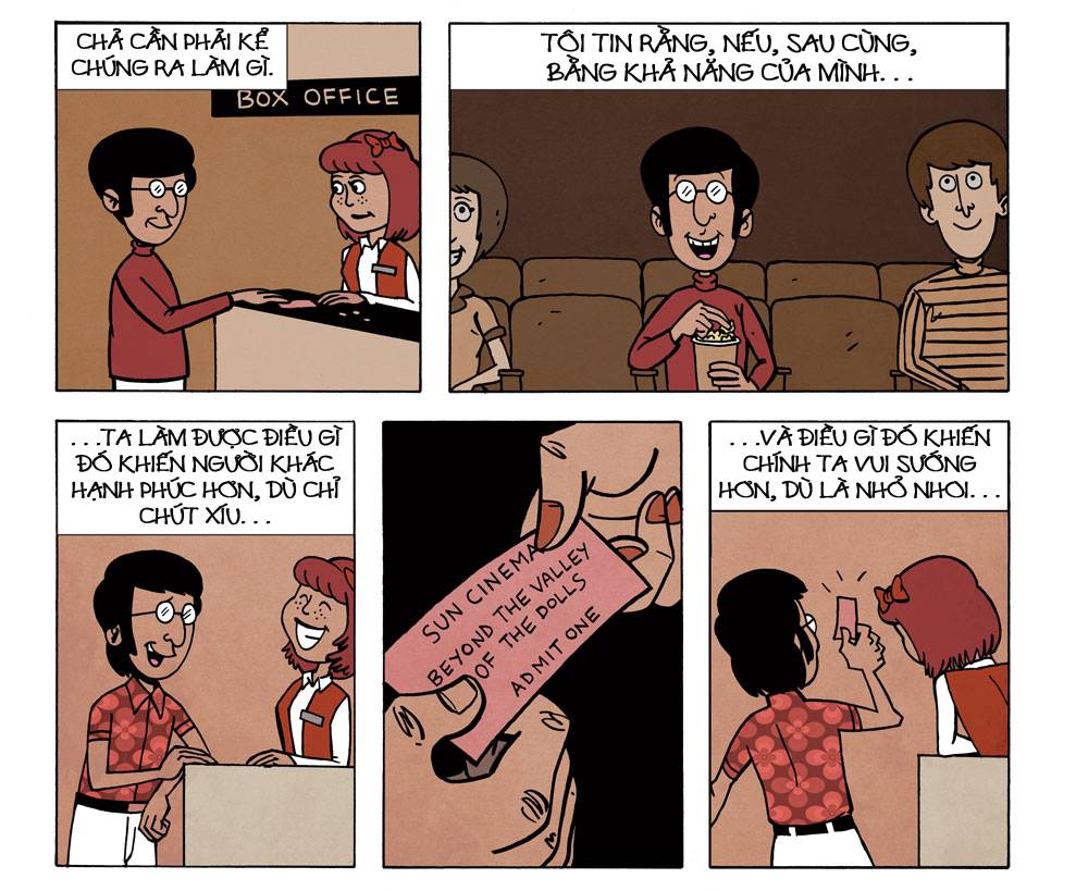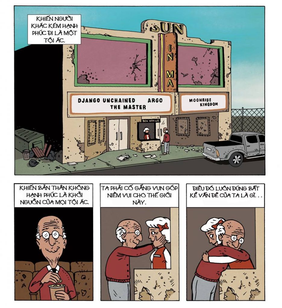 Sau đó, họ cho ông ta tất cả đồ ăn của mình, gói gém cẩn thận để người đàn ông có thể mang đi. Sau đó thì họ không gọi thêm đồ ăn cho mình nữa (có lẽ họ không đủ tiền mua), mà cứ thế dọn bàn và ra khỏi quán. Họ BIẾT sự đau khổ và chịu đựng là như thế nào, và họ rất có thể sẽ phải chịu đựng một chút vì việc làm hào phóng của mình. Nhưng điều đó không ngăn cản được những người đó; và họ là tấm gương tuyệt vời nhất về sự tử tế mà tôi từng thấy.