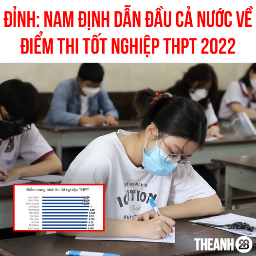Và tại kỳ thi tốt nghiệp THPT năm 2022 cũng không ngoại lệ, khi Nam Định lại dẫn đầu cả nước về điểm thi tốt nghiệp với 7,047 điểm trung bình 9 môn thi tốt nghiệp THPT, đẩy Bình Dương, “quán quân” năm ngoái xuống vị trí thứ ba.