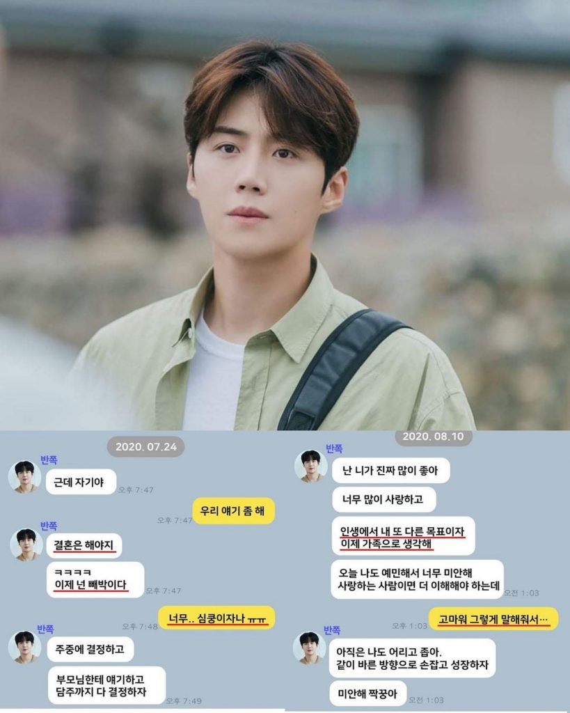 (Thật ra, Choi Young Ah đã luôn thu thập chứng cứ như một thói quen. Nhìn vào tin nhắn kakaotalk mà Dispatch thu thập được thì hoàn toàn khớp với tin nhắn chụp màn hình cuộc nói chuyện với KSH. Choi Young Ah luôn cap màn hình từng tin nhắn mà Kim Seon Ho nói, rồi gửi cho bạn bè. Tin nhắn dưới đây cũng vậy.)