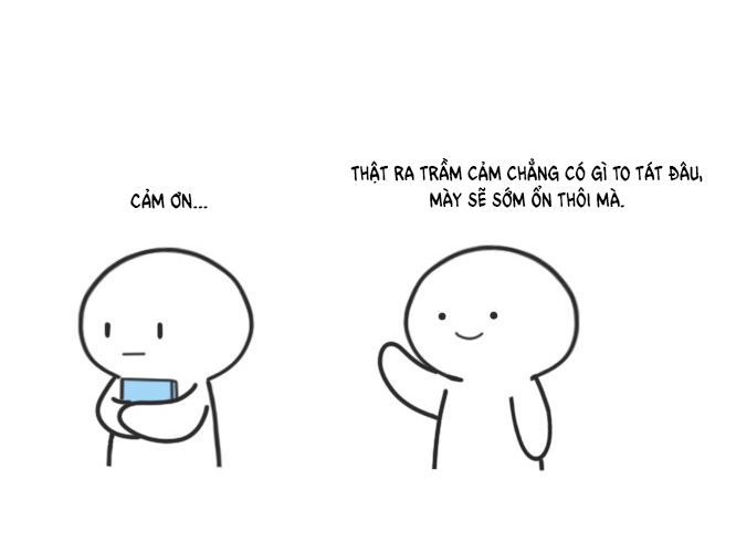 3. Thật ra có thể người xung quanh thật sự muốn tốt cho bạn thôi, chẳng qua họ không hiểu “trầm cảm” và “khó chịu vì một chuyện gì đó” nó khác nhau. Mọi người cũng đừng nên đem chuyện “trầm cảm” ra đùa, dù lý do là muốn đối phương vui hơn đi chăng nữa. Bởi thật sự “trầm cảm” là một vấn đề rất nghiêm trọng, khác nhiều so với chuyện ưu tư thường ngày. Dùng một câu trong manga/phim điện ảnh My SO Has Got Depression để nói thì dạng như là rối loạn tâm trạng vậy á.