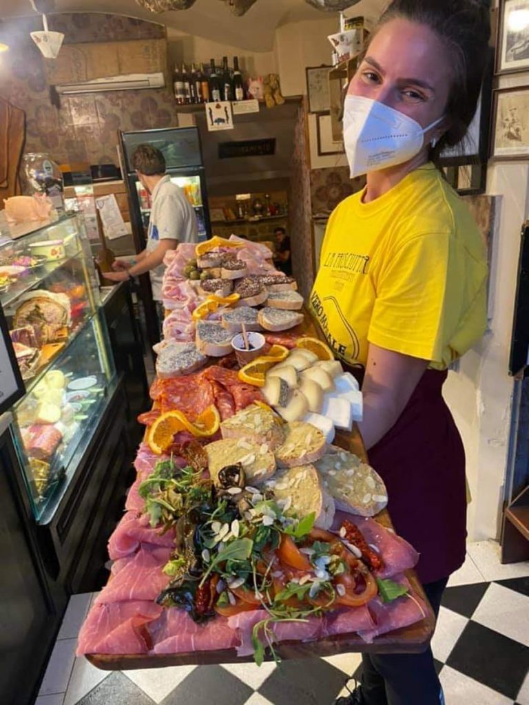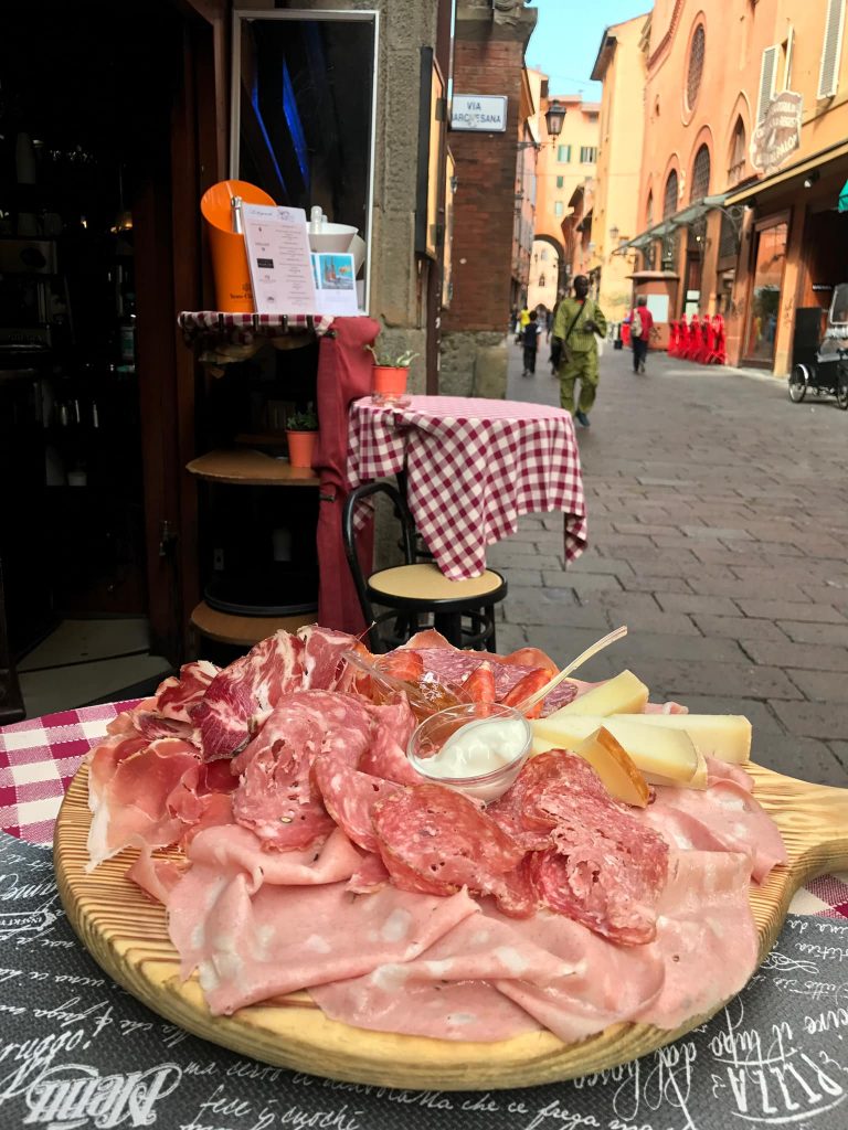 Ta sẽ đi nát cả hai bàn chân mà vẫn không chọn được tiệm ăn nào để ăn do tiệm nào cũng ngon và hấp dẫn, ăn tiệm này thì tiếc, sợ tiệm khác ngon hơn, cuối cùng đành liều nhắm mắt đưa thân chọn đại một tiệm ăn. Hãy lưu ý, nói với chủ tiệm là chỉ order món Mortadella (kiểu mix nhiều loại ham với nhau) nhỏ nhất nếu bạn đi một mình, họ sẽ líu lo cười gật đầu lia lịa ci ci ci, ai ngờ lúc mang ra một dĩa to như cái mâm, nhắm mắt nhắm mũi cố ăn trào bả họng chắc chỉ được 1/2 và cố lịch sự nói đồ ăn ngon quá nhưng to quá ăn không thể hết được, nhờ gói mang về khách sạn tối đem ra ăn. Hãy cảnh giác với quán ăn có tiếng La Prosciutteria Bologna, vừa ngắm gái xinh cắt thịt, phối các loại với nhau cùng rau, gia vị thì ôi thôi có mà chảy hết cả nước dãi thì quê lắm, ngoài ra ở đây món Mortadella nhỏ nhất của họ cho 1 người cũng phải ăn cả ngày cũng chưa hết.