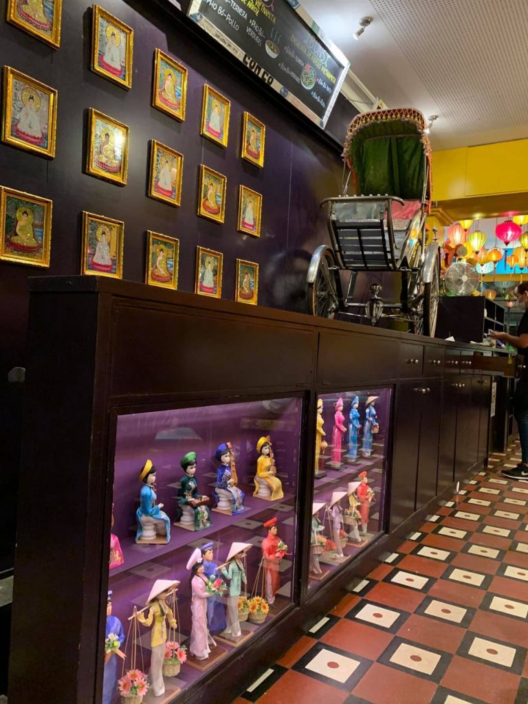 Cơ duyên đưa bọn mình tới quan này đó là: thứ nhất là sau 2 ngày ăn Hải sản và thử các món Tây ban nha dư đạm nhiều dầu mỡ thì bọn mình nghĩ tới món Việt, thứ 2 là vì nó gần cho bọn mình book phòng và lý do thứ 3 là với 4,2 sao qua hơn 3000 lượt đánh giá thì còn gì phải lăn tăn nữa. Đến quán lúc khá đông, và không có chỗ ngồi ngoài vì đã đc đặt trước, chỉ có bàn ở bên trong nhưng phải đợi. Sau tầm 10 phút chờ thì bọn mình được xếp vào một bàn dành cho 2 người. Ấn tượng đầu tiên là quán đẹp nha, chỉnh chu, trang trí hoàn toàn liên quan tới Việt Nam: một góc đèn lồng Hội An, xích lô, nón lá, tượng áo dài, còn treo rất nhiều ảnh Phật. Nói chung từ tên quán, Menu, bài trí quán đều rất Việt Nam, duy chỉ có một điểm lạ là nhân viên phục vụ lại toàn người nước ngoài, kể cả lúc vào trong quan sát thì đứng bếp cũng k phải người việt. Một dấu hỏi chợt hiện lên trong đầu?!?