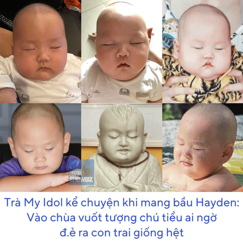 Thì khi đến đó My thấy có bức tượng chú tiểu nhỏ xinh yêu quá là yêu! Xong mình cứ rờ đầu rồi vuốt bức tượng. Nghĩ trong đầu ôi sao mà mặt chú tiểu thấy thương quá đi! Nhìn thấy là thấy vui rồi! Và mình cũng xin để chụp lại hình chú tiểu. Hwa ngồi lục lại xem hình mới phát hiện trời ơi sao mà giống quá giống vậy!