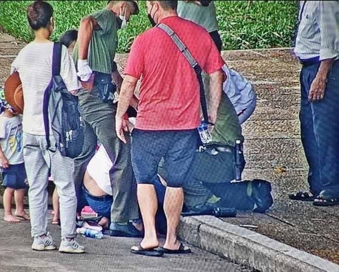Cùng lúc đó, Thượng úy Trần Đình Đạt cũng đã chạy đến hỗ trợ. 15 phút sau, xe cấp cứu của Trung tâm cấp cứu 115 đã tới đưa anh Q đến bệnh viện Đa khoa Xanh-Pôn cấp cứu.