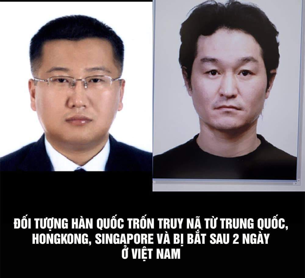 Theo đó, hai bị can người Hàn Quốc là Yon Taiyi (50 tuổi) và Nam Kiwon (51 tuổi). Trong đó, Yon Taiyi bị Tổ chức Cảnh sát hình sự quốc tế Interpol phát lệnh truy nã quốc tế ngày 23/7/2021 vì hành vi lừa đảo; Nam Kiwon bị truy nã quốc tế từ 16/8/2021 về hành vi gây thương tích thân thể nghiêm trọng cho người khác. Hai tên này đi qua nhiều quốc gia và đến Việt Nam vào đầu tháng 9.