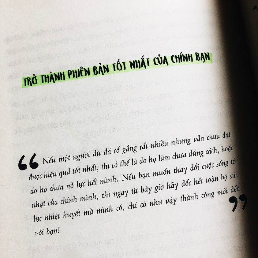 Cuộc sống luôn cho ta những thử thách, khiến tinh thần giảm sút và ý chí bị ảnh hưởng. Đừng vì gặp phải những thất bại hay khó khăn mà suy nghĩ rằng mình không đủ hay không xứng đáng. Thay vào đó, hãy nhớ đến mục tiêu cuối cùng và lí do tại sao lại muốn đạt được chúng. Đích đến của bạn sẽ luôn là động lực thúc đẩy bạn tiến về phía trước. Từ đây, bạn mới có thể tin tưởng vào bản thân và trân trọng chính mình.