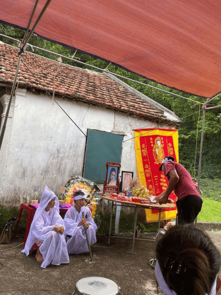 HÌNH ẢNH HAI ĐỨA TRẺ ĐANG CHỊU TANG MẸ, MẸ CỦA CHÚNG LÀ CHỦ TIỆM XĂM VỪA QUA ĐỜI Ở MÓNG CÁI HÔM QUA