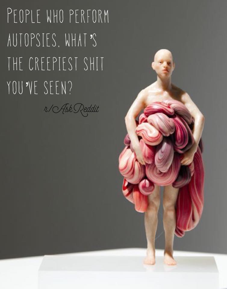 Tôi cũng có một chuyện tương tự, nhưng không phải tôi gặp mà là đồng nghiệp (chúng tôi làm bên hỗ trợ y tế). Một người đàn ông được tìm thấy đã chết ngay trong nhà tắm của anh ta, cái xác trần truồng nằm úp mặt xuống đất. Đã vài tuần trôi qua rồi. Khi người ta di dời cơ thể anh ta, của quý anh ta bị dính chặt vào sàn phòng tắm và rách toạc luôn.