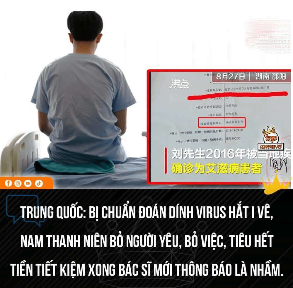 Nhưng đến nay anh vẫn cảm thấy mình còn khỏe vai cả ct, anh lại đến bệnh viện năm xưa kiểm tra và cho ra kết quả… Âm tính với H.I.V. Chắc chắn là năm đó anh bị xét nghiệm nhầm, người đàn ông gửi đơn kiện lên tòa án và bệnh viện đã thừa nhận sai sót.