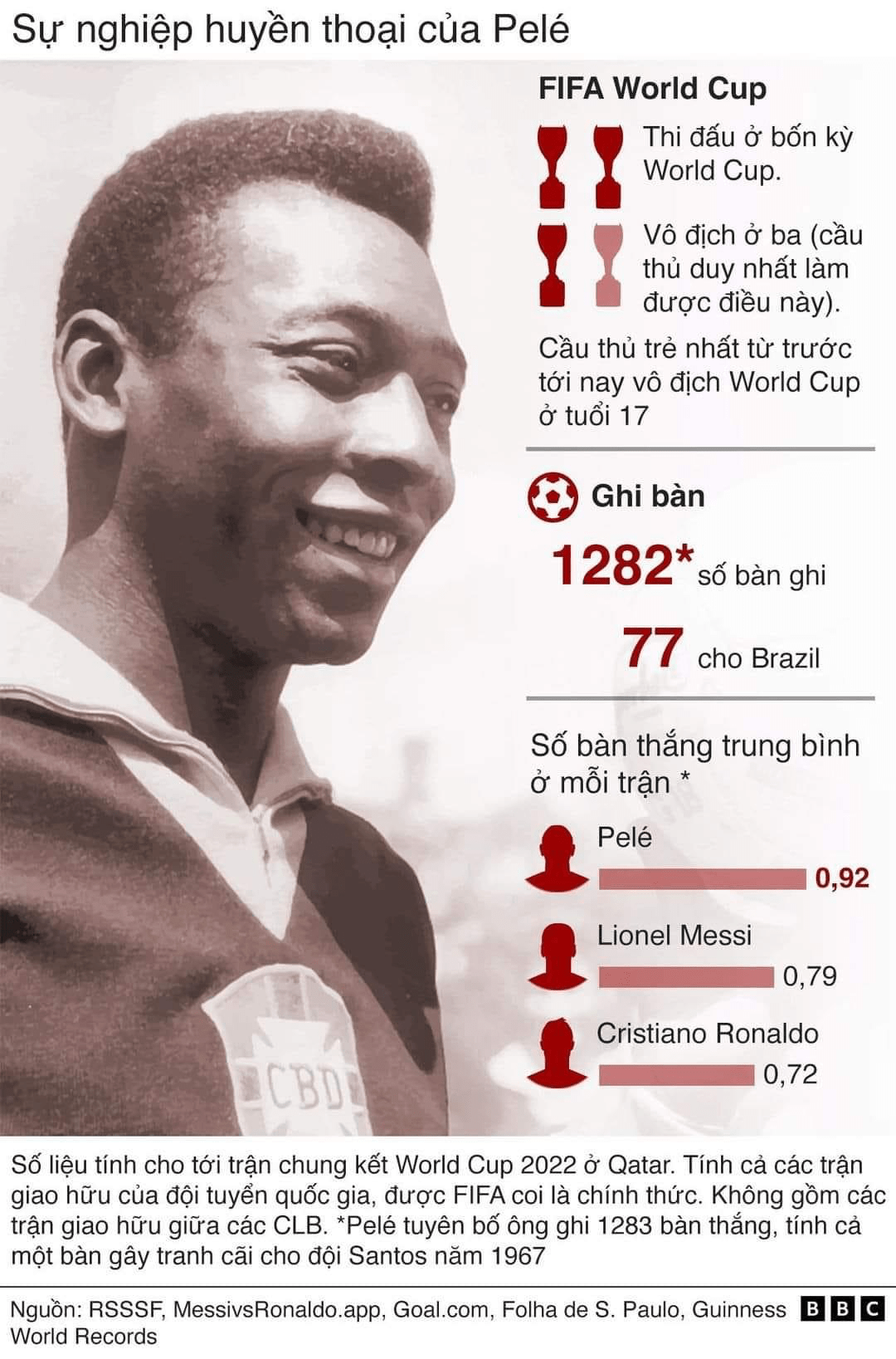 Huyền thoại bóng đá Brazil Pele, được cho là cầu thủ xuất sắc nhất từ trước tới nay, vừa qua đời ở tuổi 82.