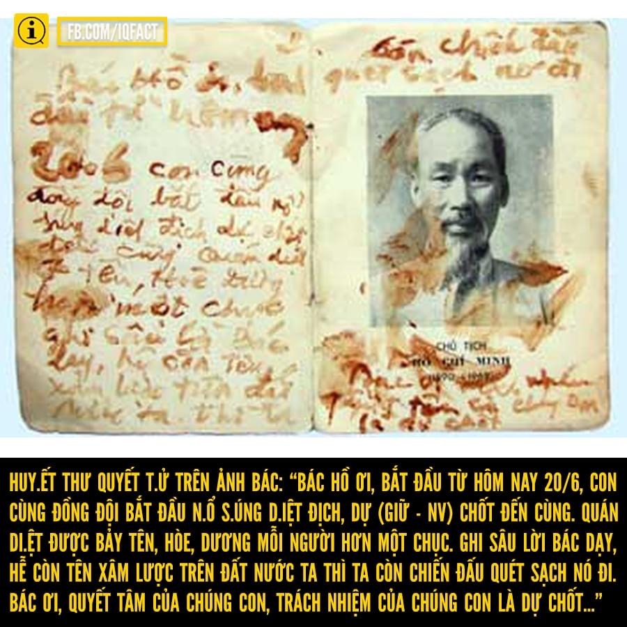 Lợi dụng địch chùn lại sau loạt mìn, Lê Bá Dương lấy trong túi áo tấm ảnh Bác Hồ rồi dùng máu từ vết thương viết thẳng vào tấm ảnh những dòng chữ “Bác Hồ ơi, bắt đầu từ hôm nay 20/6, con cùng đồng đội bắt đầu nổ súng diệt địch, dự (giữ – NV) chốt đến cùng. Quán diệt được bảy tên, Hòe, Dương mỗi người hơn một chục. Ghi sâu lời Bác dạy, hễ còn tên xâm lược trên đất nước ta thì ta còn chiến đấu quét sạch nó đi. Bác ơi, quyết tâm của chúng con, trách nhiệm của chúng con là dự chốt…”.