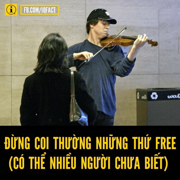 Không mấy ai quan tâm cả! Suốt 45 phút anh biểu diễn, không có mấy người đứng nghe, và người ta chỉ n.ém cho anh vỏn vẹn 32 đô la; và khi anh ngừng chơi, thu xếp dụng cụ, chẳng ai buồn quan tâm cả! Trong khi trước đó 2 ngày, anh biểu diễn ở một nhà hát lớn ở Boston, vé bán hết sạch với giá 100 đô/vé, và ban tổ chức sẵn sàng trả 1.000 đô cho mỗi phút tài năng của anh ta.