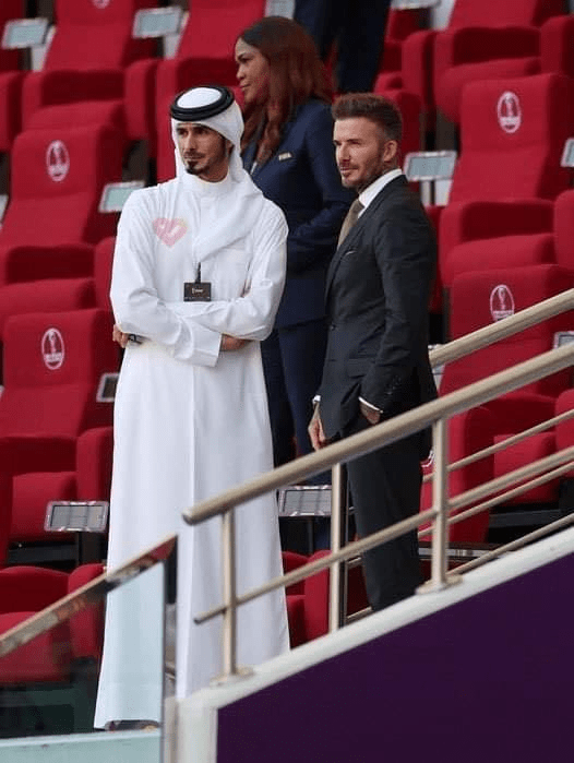 Người mặc áo dài trắng là Sheikh Jassim Bin Hamad Al Thani – hoàng tử của Qatar. Ngài sinh năm 1978 (44 tuổi), đã kết hôn và có 8 người con. Bức ảnh được chụp trước khi trận đấu giữa đội tuyển Anh và đội tuyển Iran diễn ra.