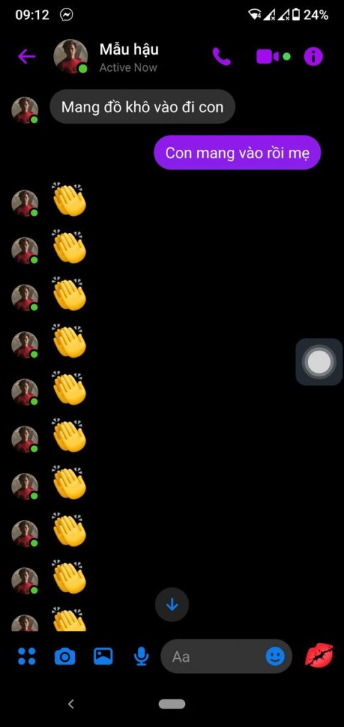 Hôm nay trời đột nhiên xị mặt xuống và gió cũng to hơn bình thường. Mẹ tôi giặt đồ từ lúc trời hẵng còn đẹp nên khi trời chuyển xấu mẹ tôi đã nhắn tin cho tôi qua messenger để lấy đồ từ ngoài hiên vào.